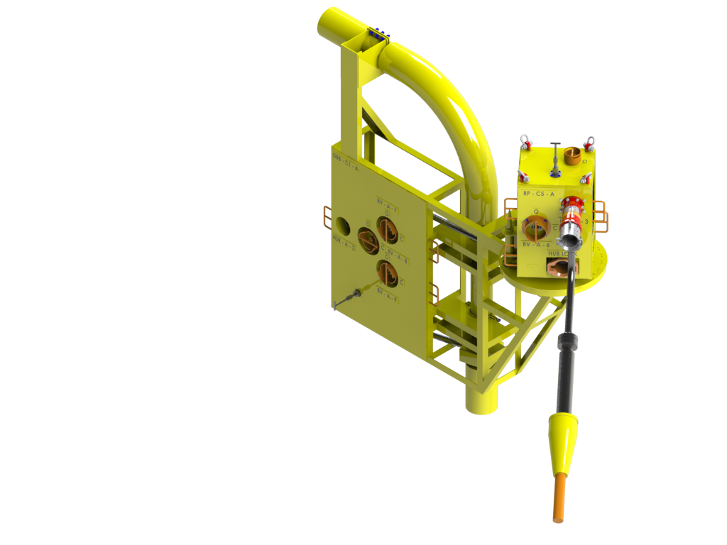 The panels are designed to be ROV friendly and are comprised of standard API/ ISO hot stabs or DTI high flow hot stabs based on pressure rating and flow requirements for the hydraulic interface.